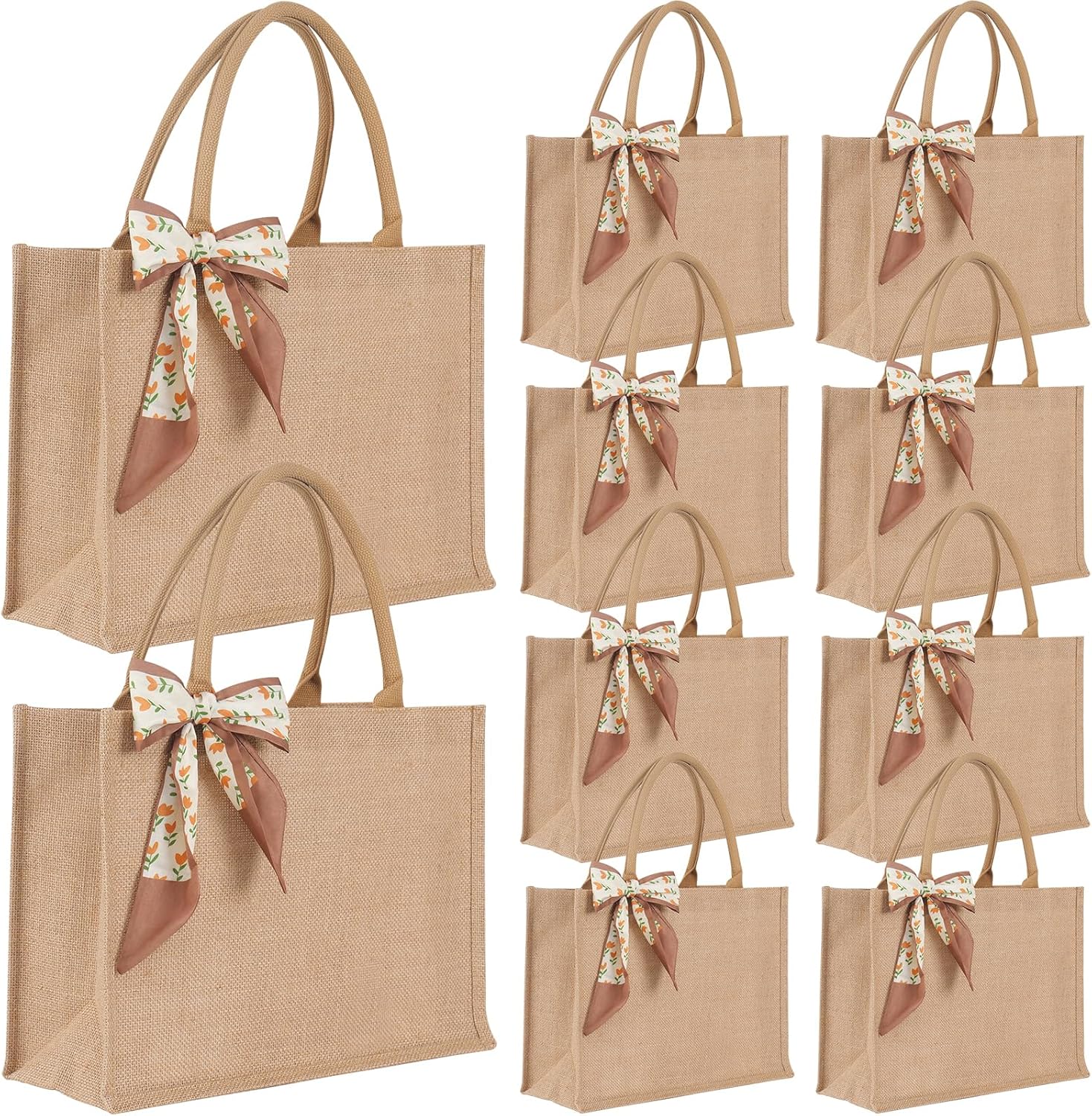 Large Jute Tote Bag Set. Durable, waterproof and reusable. The ribbon pairs with any outfit, for any occasion.