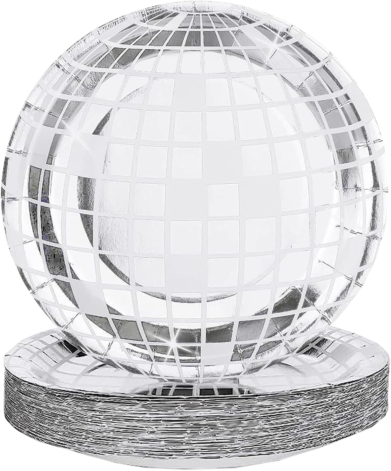 25P Disco Plates 7" Disposable Disco Ball Paper Plates for 70's Party Supplies Birthday Wedding Party Decorations (Silver, 7IN25P)
