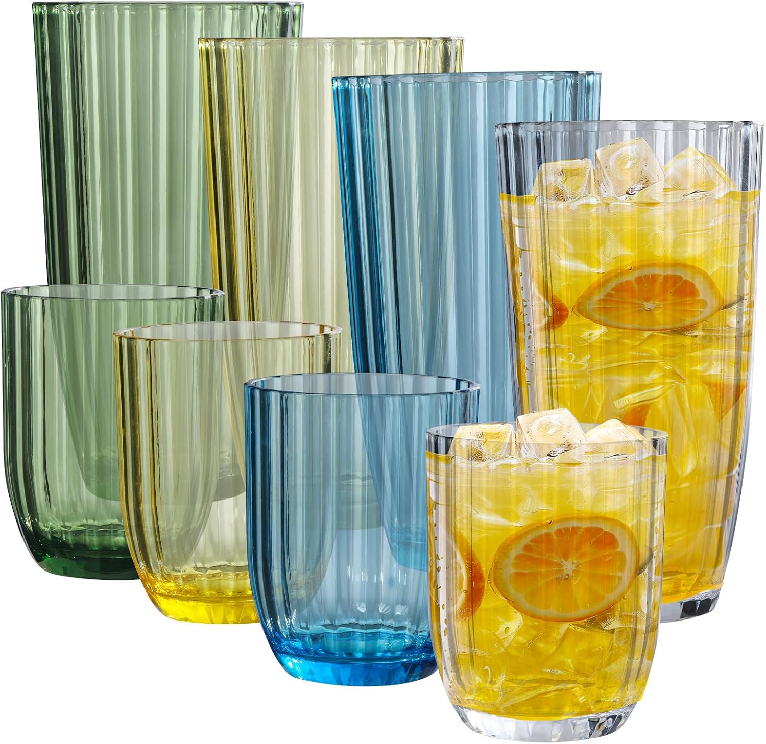 Acrylic Clear Highball Plastic Cups | Plastic Reusable Tumblers 15oz & 20oz (Set of 8) | Stackable | BPA-free Tumblers | Shatterproof | Top-rack Dishwasher Safe