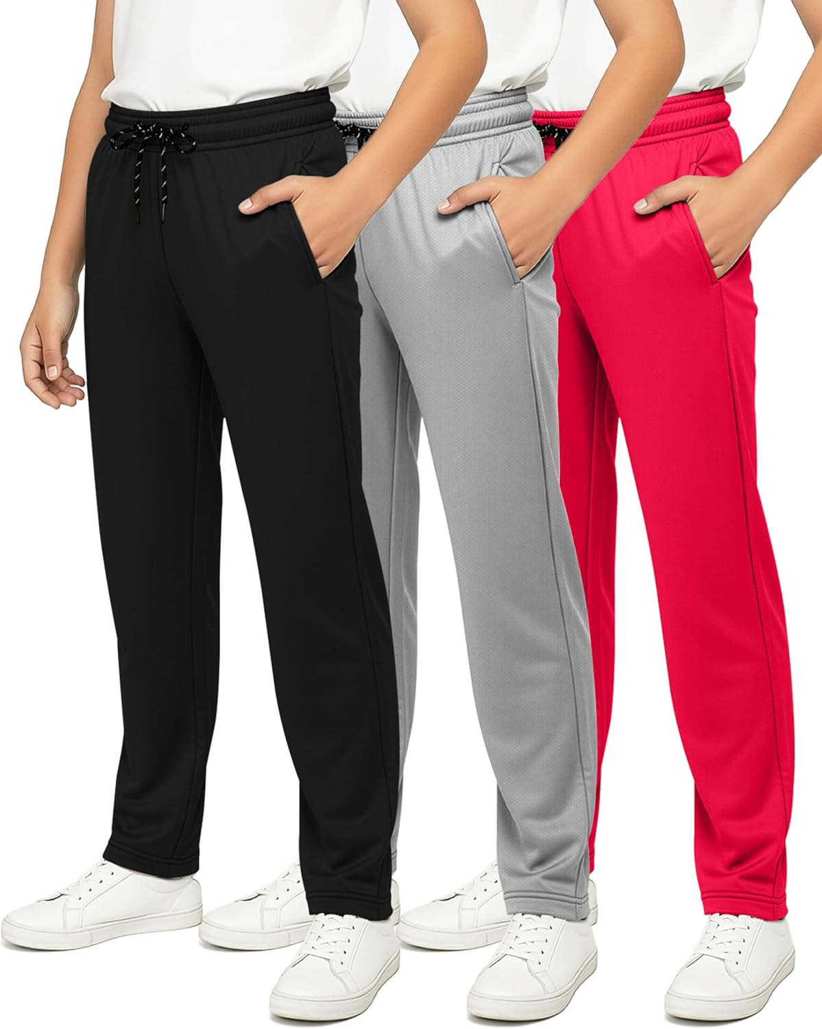 Real Essentials 3 Pack: Boys' Mesh Open Bottom Active Sweatpants with Pockets & Drawstring