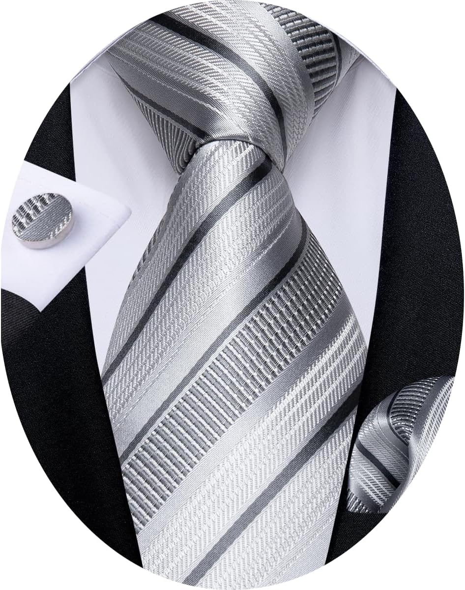 DiBanGu Striped Tie Set for Men Silk Woven Plaid Necktie and Pocket Square Cufflinks Business Wedding