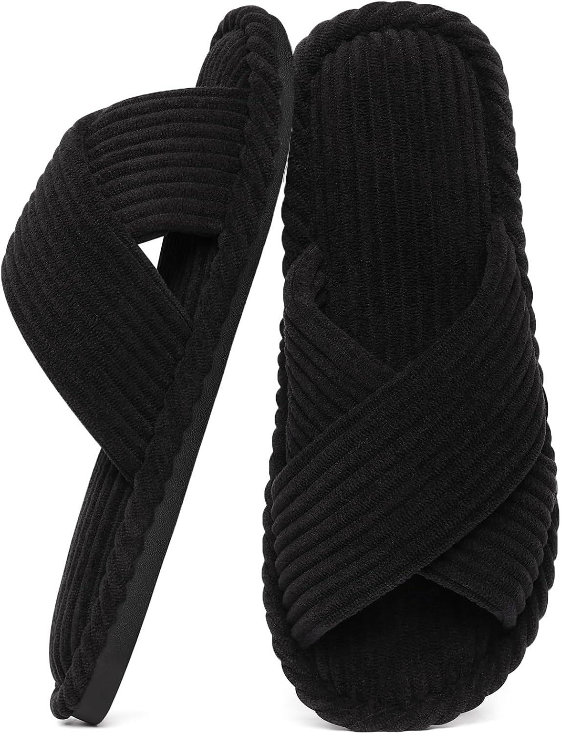 Evshine House Slippers for Women Memory Foam Bedroom Slippers Corduroy Open Toe Slides Shoes Indoor and Outdoor