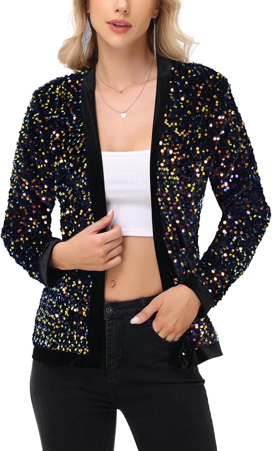 Anna-Kaci Women's Sparkly Sequin Cardigan Long Sleeve Open Front Glitter Party Sequin Blazer Jacket