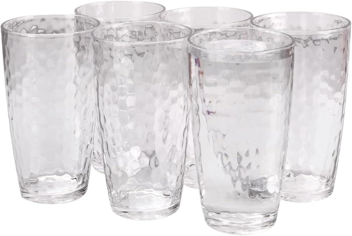 20-Ounce Plastic Tumbler Acrylic Drinking Glasses, Reusable Plastic Cups, Stackable, BPA-Free, Shatter Proof, Dishwasher Safe, Set of 6 (Clear)