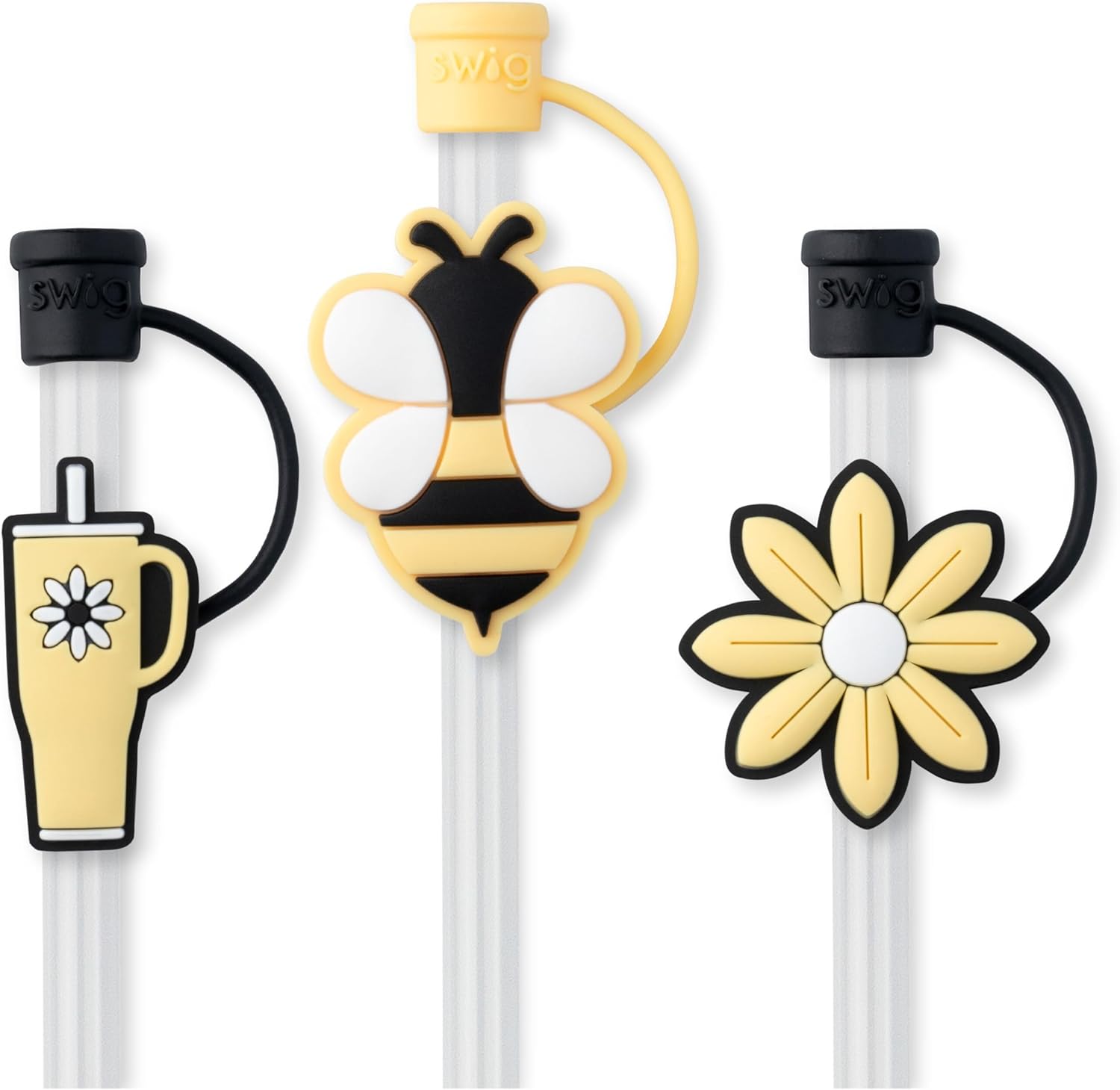 Swig Straw Toppers Set, 3 Reusable Straws with 3 Silicone Covers, Cover Cap with Customizable Length, Compatible with 40oz Tumblers, Tumbler Accessories (Busy Bee)
