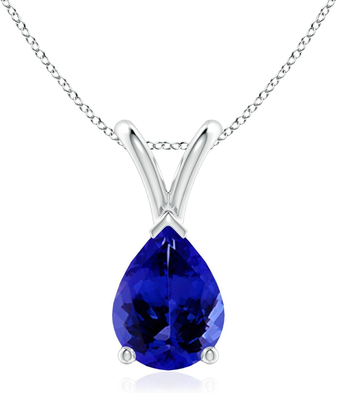 Angara Natural Tanzanite Solitaire Pendant for Women | V-Bale Pear-Shaped Tanzanite Solitaire Pendant in 14K Solid Gold/Silver/Platinum With 18" Chain | December Birthday, Gemstone Jewelry Gift