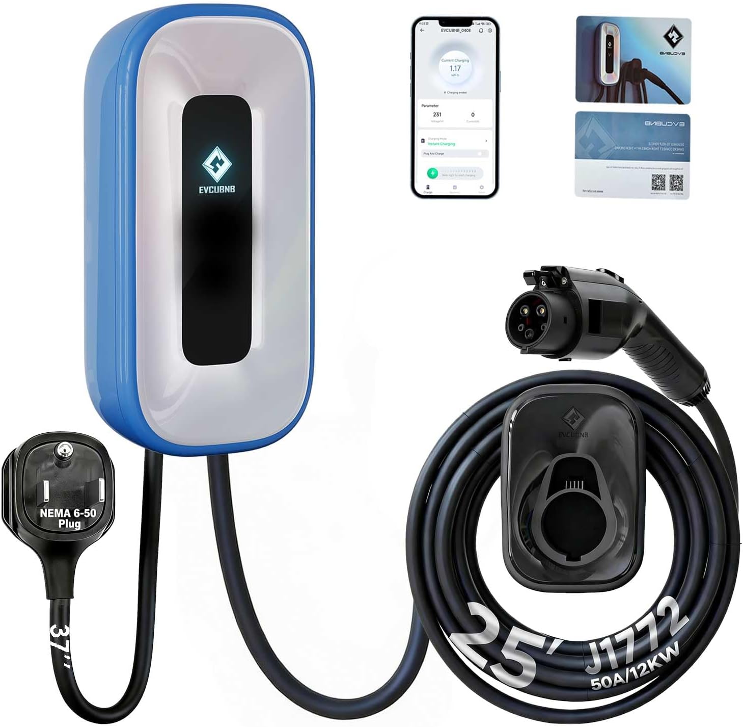 EV Charger Level 2,50 Amp/240V Charging Station, Indoor/Outdoor EVSE, 25Ft Level 2 ev Charger, WiFi/APP/RFID/Bluetooth
