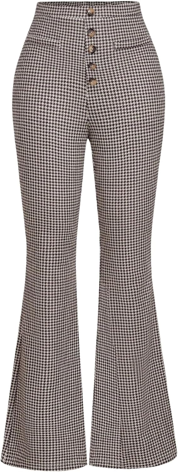 MakeMeChic Women's Houndstooth Flare Pants High Waist Bell Bottom Work Trousers