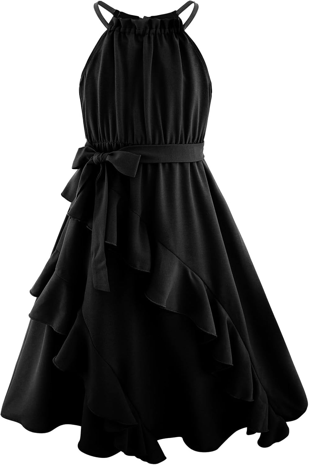 Girls Dresses Tween Halter Tie Back Tiered Ruffle A-Line Flowy Dress Summer Sleeveless Sundress Size 5-14 Years