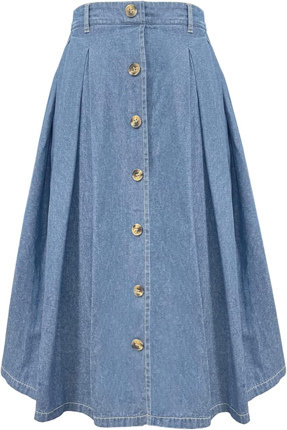 Pleated A-line Midi Skirt Elastic Waist Button Front Casual Flared Long Skirts with Pocket for Women