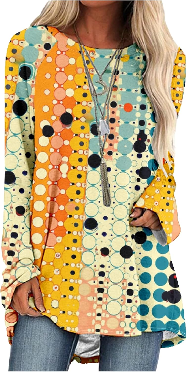 Long Sleeve Oversized Shirts for Women Polka Dot Long Tee Crew Neck Casual Loose Fit Clothes
