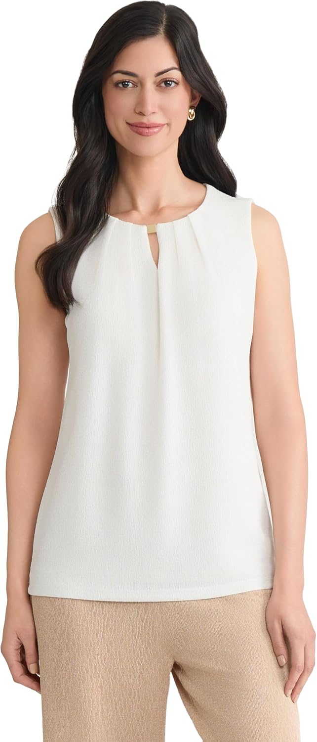 Kasper Womens Shimmer Knit Pleat Neck Top