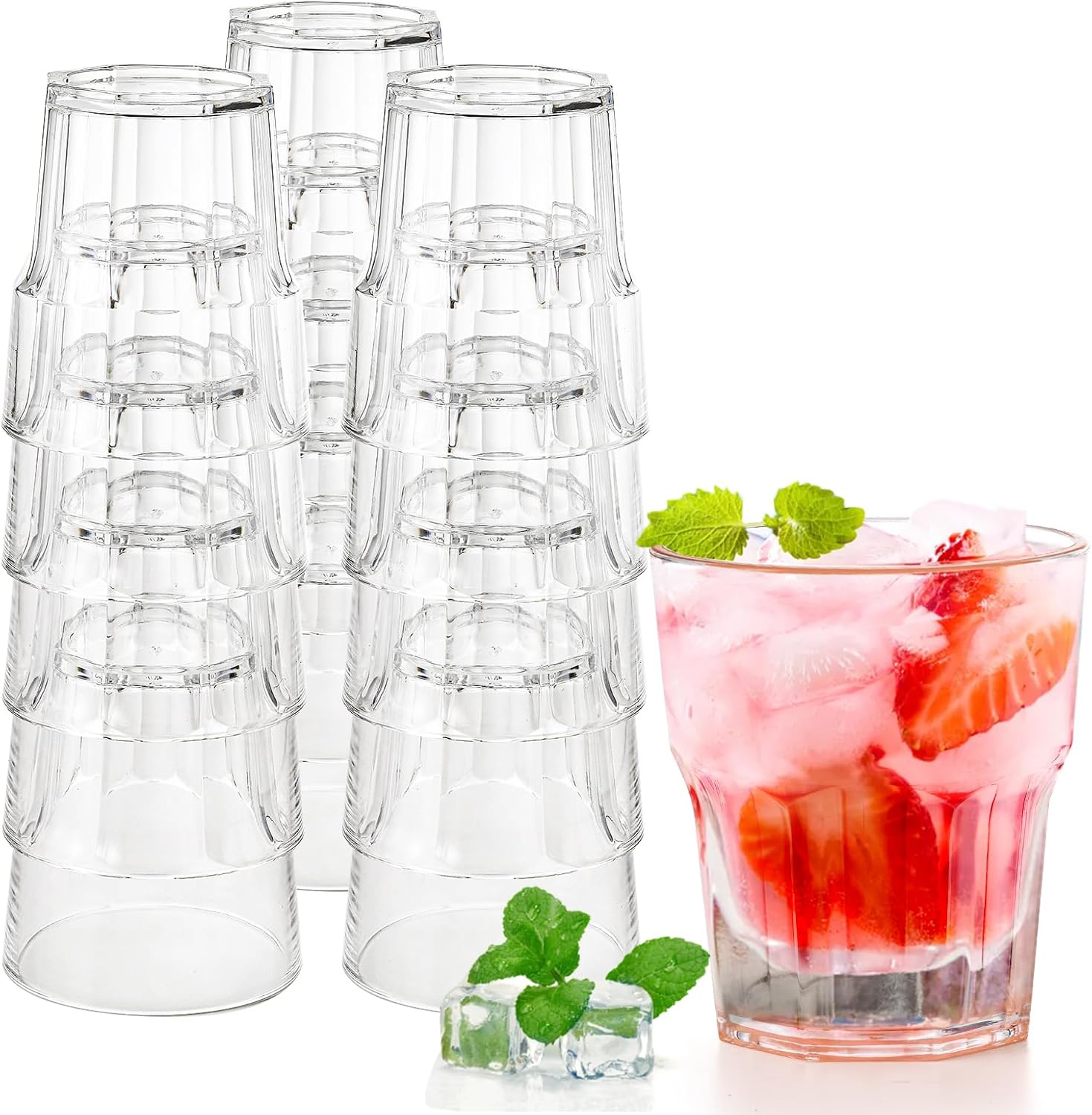 Tebery 16 Pack Classic Clear Plastic Tumbler Reusable Drinking Glasses, 8Oz Drinking Water Juice Cups, Stackable, BPA-Free