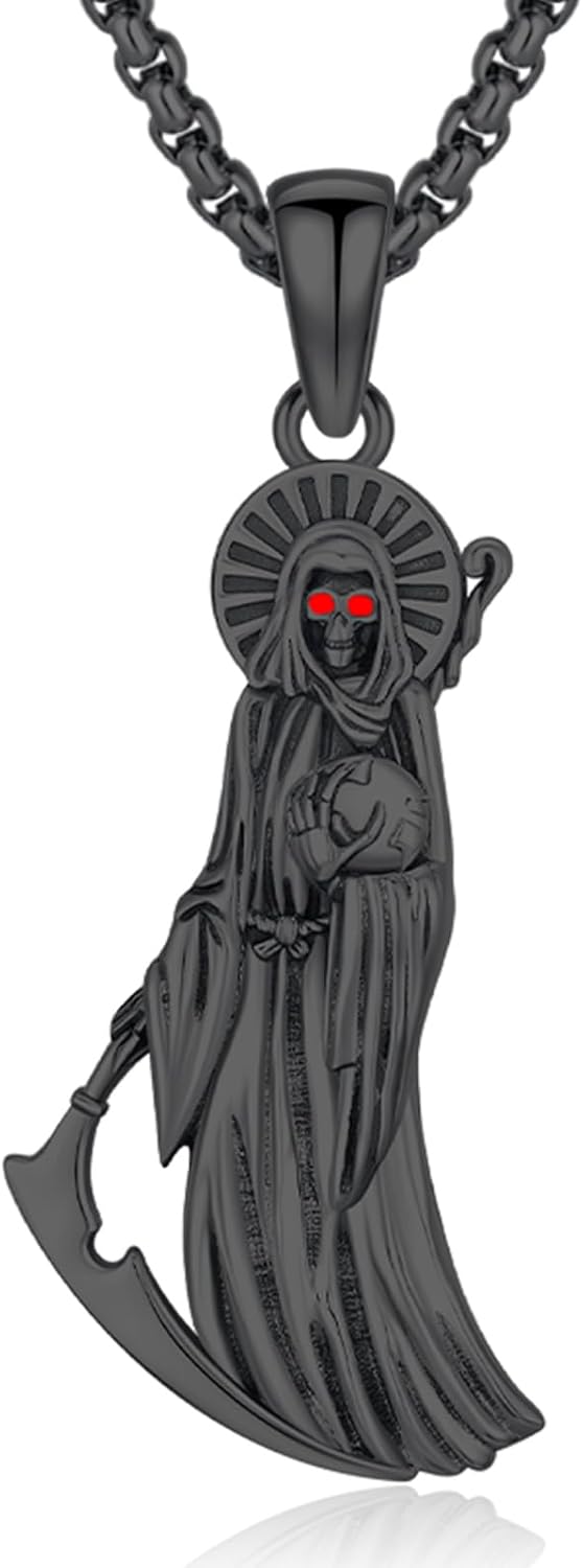 Santa Muerte Necklace Grim Reaper Pendant 925 Sterling Silver La Santa Muerte Skull Holy Death Amulet Protection Jewelry With Sickle for Men Women Holiday Gifts