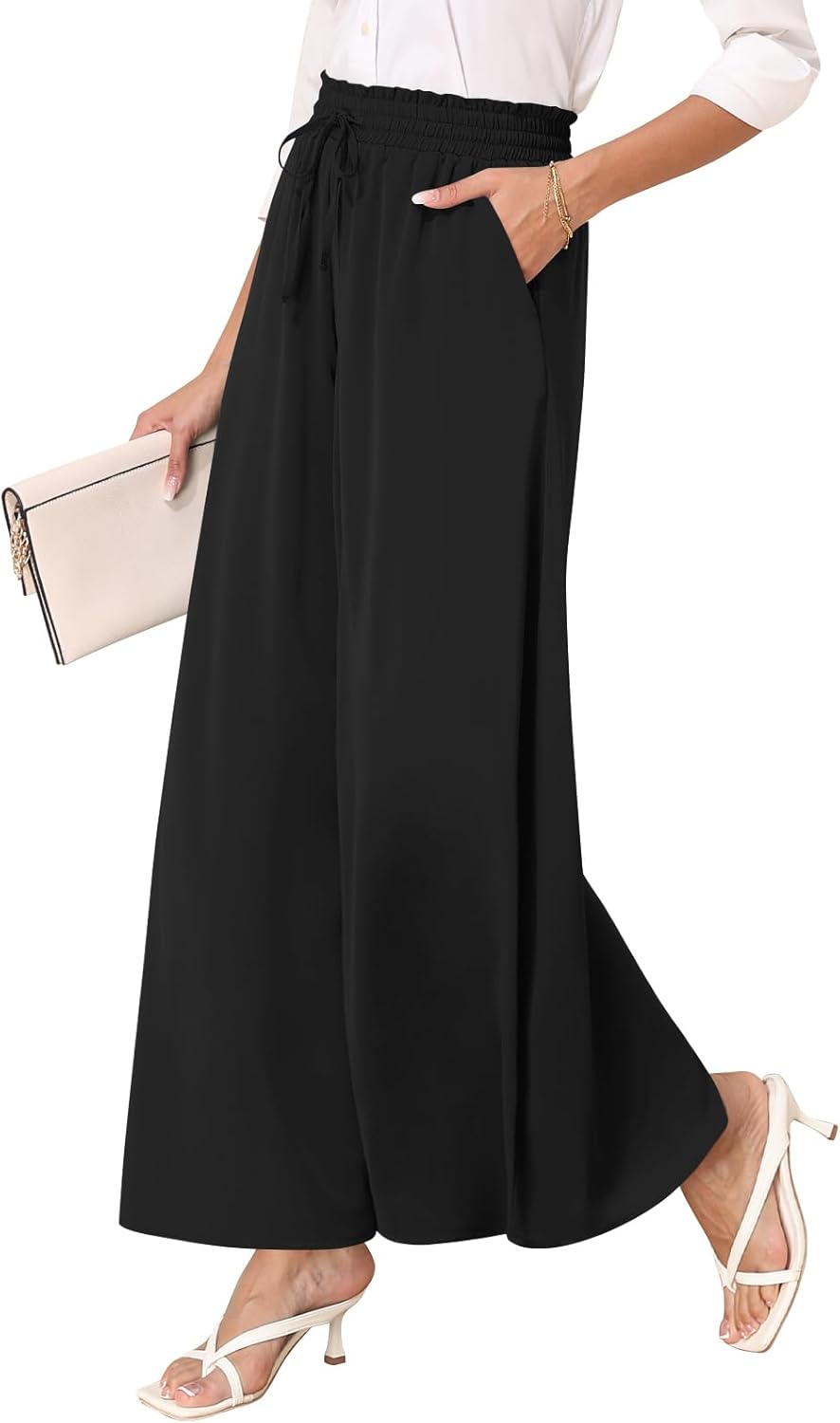 Women's Chiffon Dressy Pants High Waist Casual Wide Leg Palazzo Pants Loose Trousers with Pockets