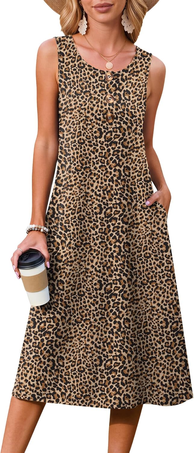Zeagoo Women Summer Midi Dress 2026 Sleeveless Casual Beach Sundress Button Down Loose Spring Tank Dresses with Pockets