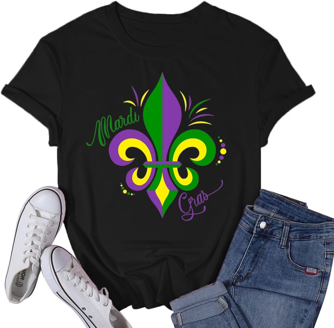 Womens Mardi Gras Shirt Fat Tuesday Shirts Carnival Theme Party Tee Tops