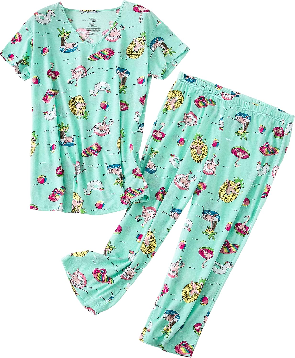 PNAEONG Women Pajama Set Sleepwear Tops with Capri Pants Casual and Fun Prints Pajama Sets