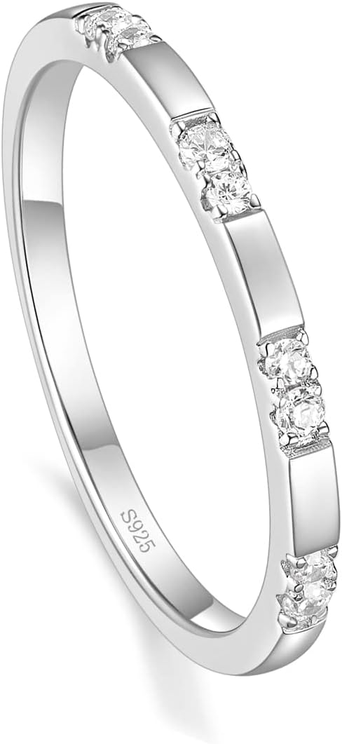 925 Sterling Silver Rings for Women Ladies Wedding Band V Shaped Heatbeat Pattern Cubic Zirconia Engagement Eternity Ring Thin Stackable Comfort Fit Size 4-12