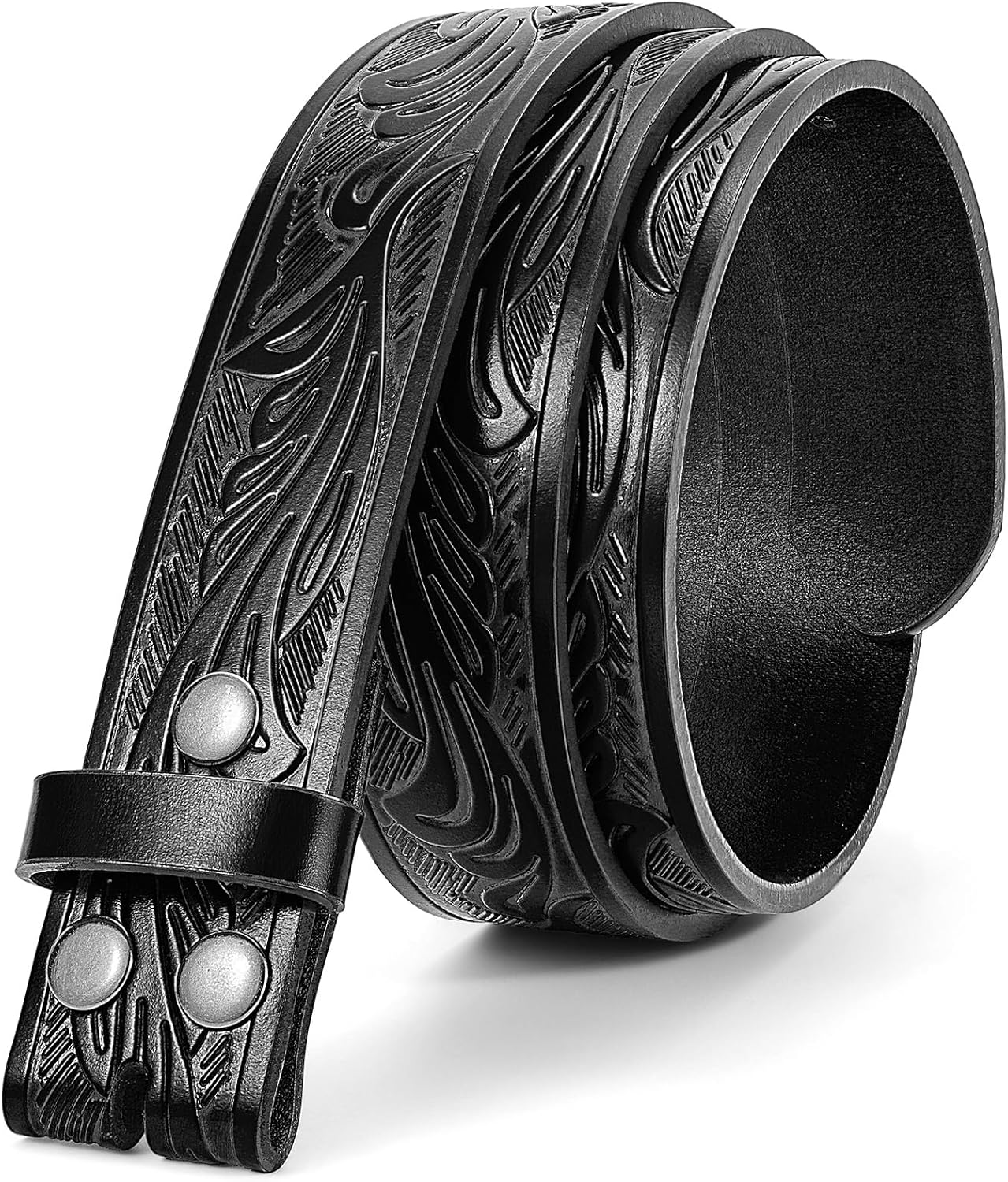 SANSTHS Western Leather Belt Strap for Men, Cowboy Belts without Buckle Cowgirl Western Strap Belt for Jeans Christmas Belts