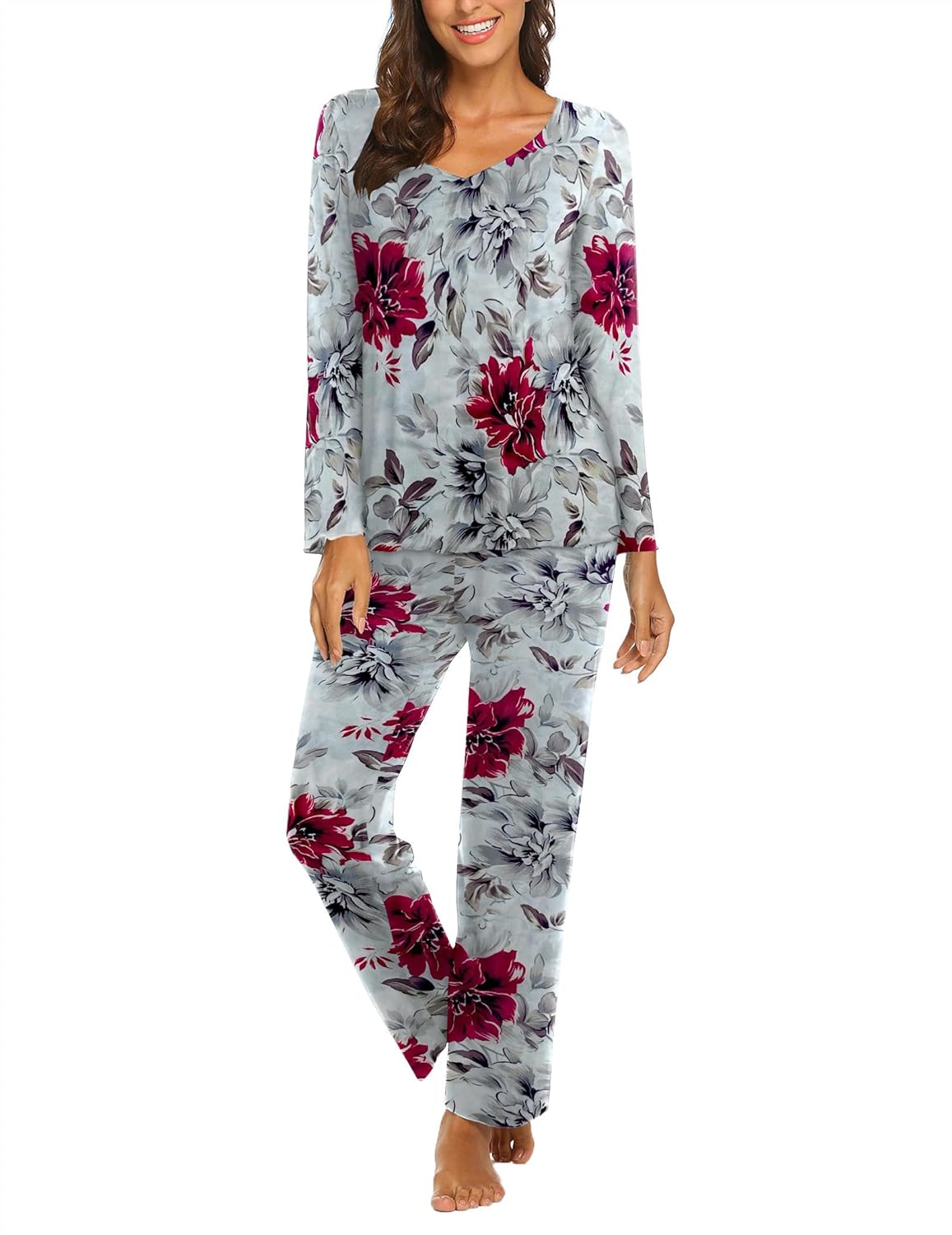 Ekouaer Womens Pajama Sets 2 Piece Lounge Set Fall Winter Pajamas Long Sleeve Pjs Top and Pants Soft Pj Sets Loose Sleepwear