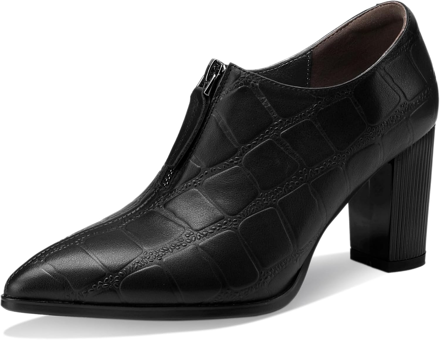 TDD Patent Leather Ankle Boots for Women Chunky Block Pointed Toe Extra Wide Booties Botas Para Mujer High Heels Dress Warm Lined Classic Ladies Comfortable Dressy 3 Inch Boot