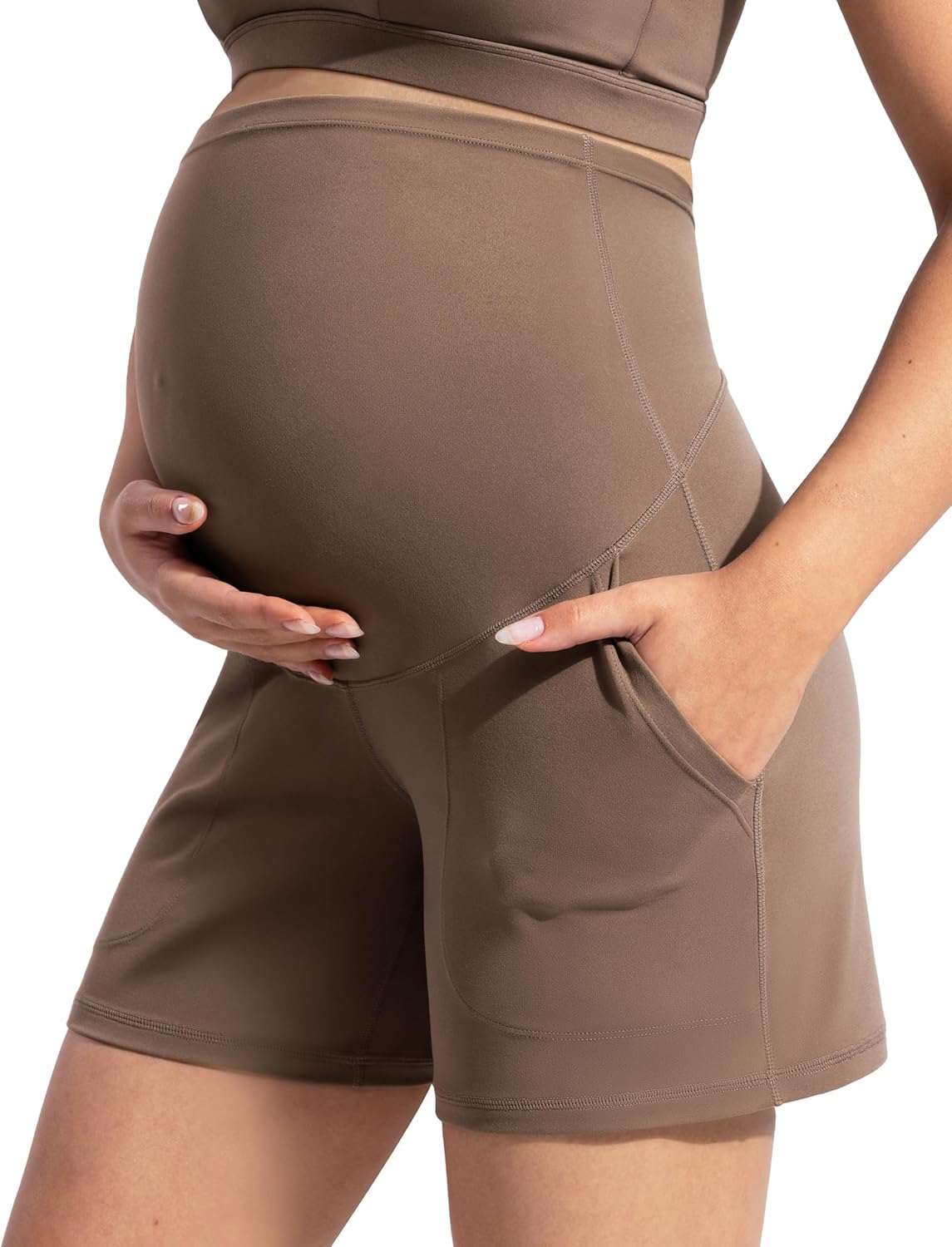 POSHDIVAH Women's Creamluxe Maternity Yoga Shorts with Pockets Pregnancy Workout Running Pants Clothes 6"/9"/12"