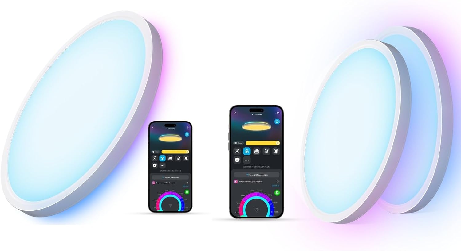 - Multicolored Lighting: The main light of smart ceiling light is RGB+WW, while the back light is RGBIC. With 16 million background colors, the back light enriches the whole house atmosphere. Note: The WW of the main light and back light cannot be on simultaneously.
