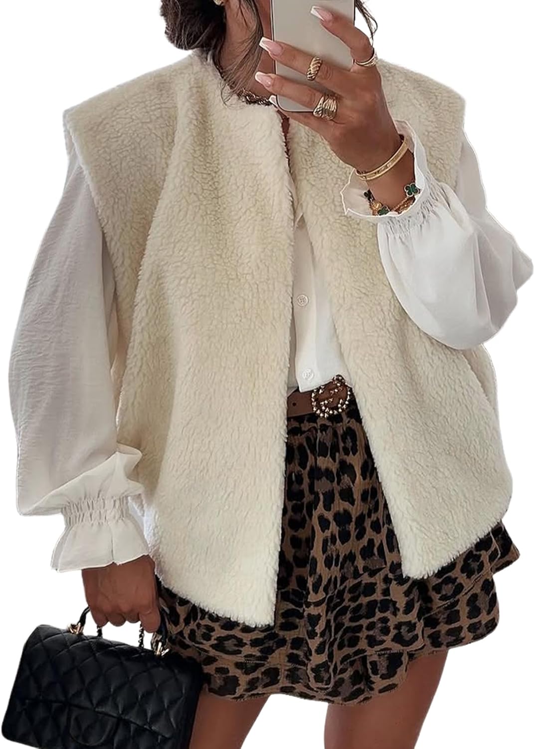 Yimoon Womens Sherpa Vest Fleece Fuzzy Vests Casual Open Front Sleeveless Vest