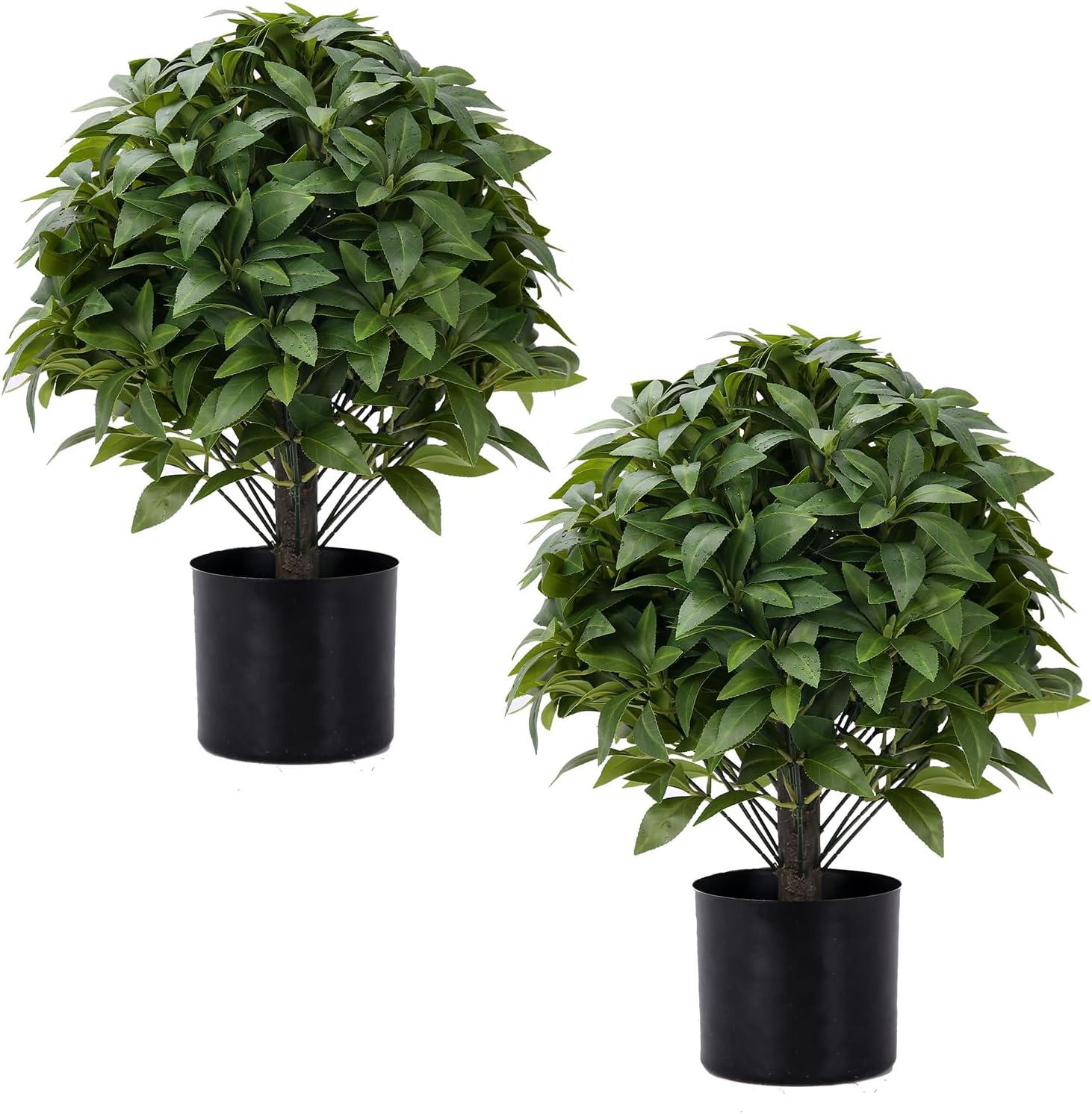 - [Product Size]:Indoor and outdoor artificial Evergreens is 20 inches tall and 13 inches wide,comes with a black plastic planter that is 5 inches tall and 5.9 inches wide.The height of the Evergreens is measured from the bottom of the planter to the top leaf of the Evergreens,and the width of the Evergreens is measured from the leftmost leaf to the rightmost leaf,the product is handmade.It is normal to have 1 inch error in measurement.If you mind,please buy with caution