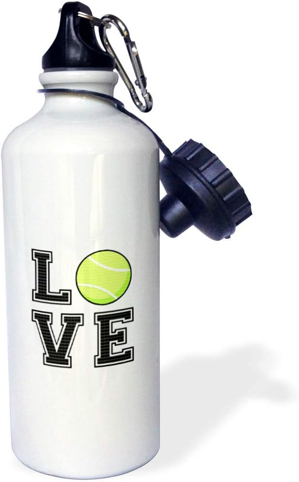 3dRose Print of Love Tennis-Sports Water Bottle, 21 oz, White