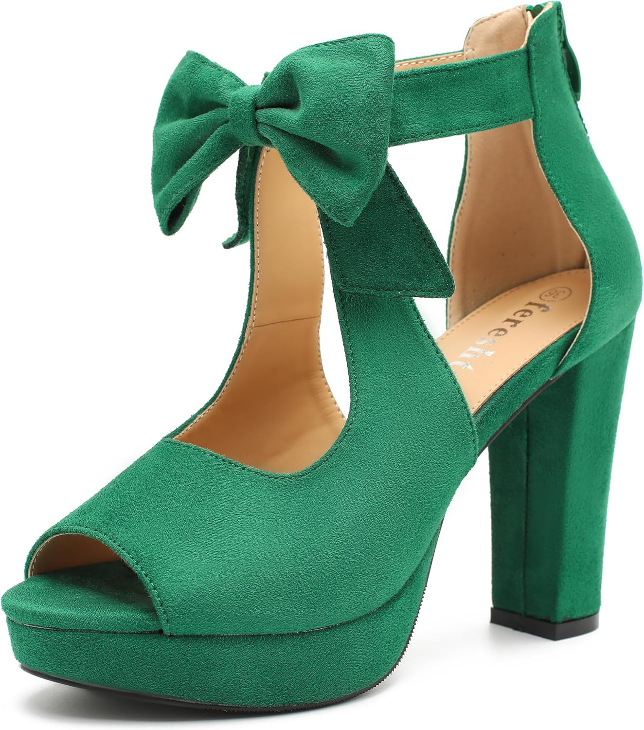 fereshte Women's Bow Chunky Heel Sandals, Platform High Heel, Peep Toe, 3.94 Inch Block Heel