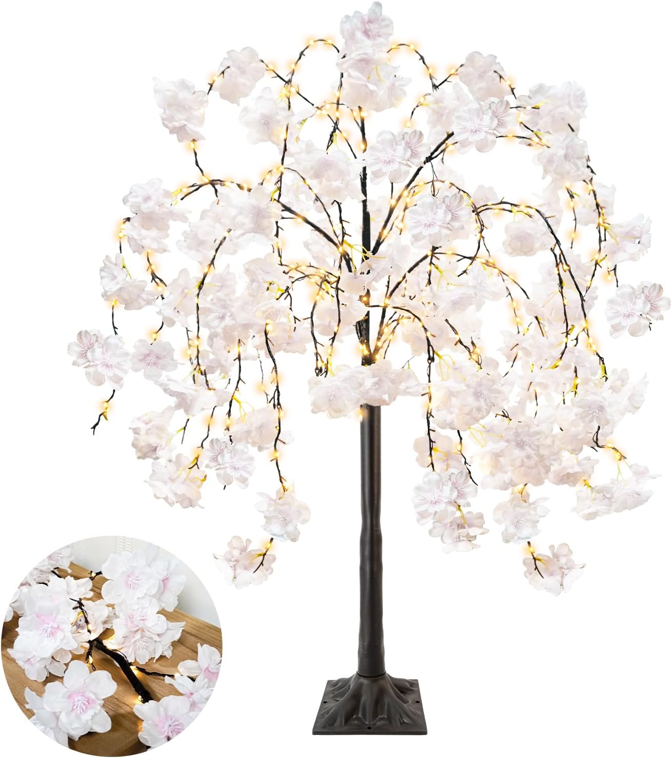 - Cherry Blossom Tree Lights: 4FT lighted cherry blossom tree is dotted with 360 LED warm white fairy lights and 288 lush cherry blossom. Lush tufts of delicately detailed pink blooms