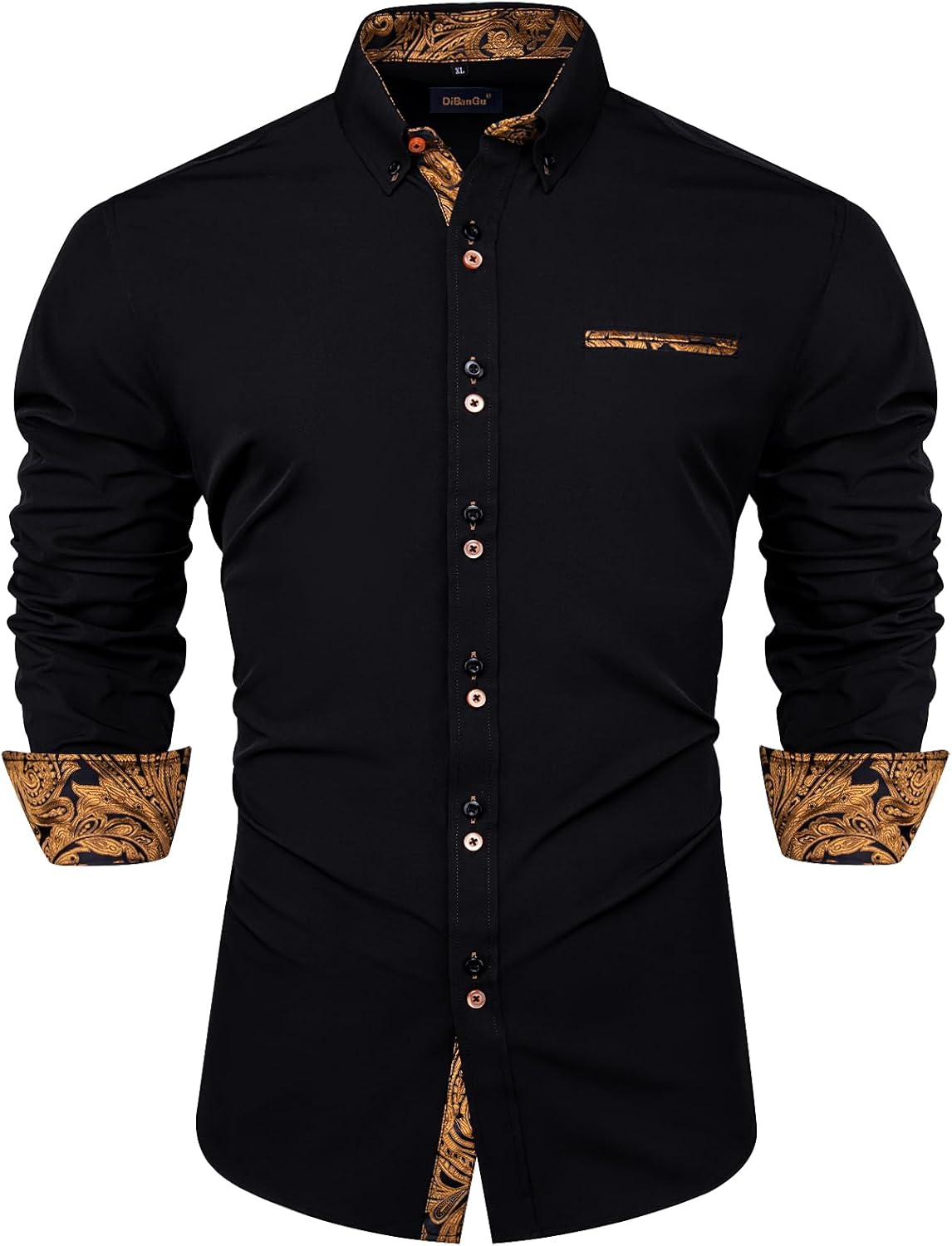 DiBanGu Men's Dress Shirt Long Sleeve Casual Button Down Shirts Regular Fit Inner Contrast Shirt for Business Party