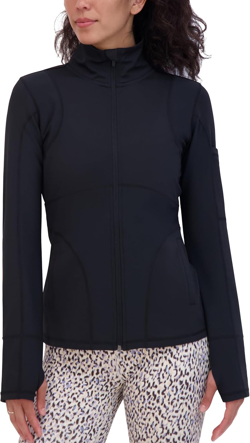 Sage Collective Women's Studio Yoga Jacket –zip-up With Mock Neck, Pockets & Thumbholes