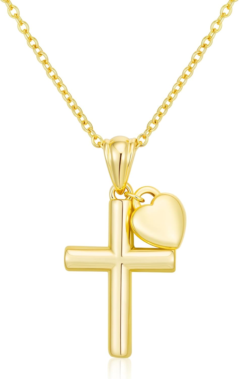 Heart Cross Necklace for Girls Women, Christian Jewelry Gift for Teen Kids Girls