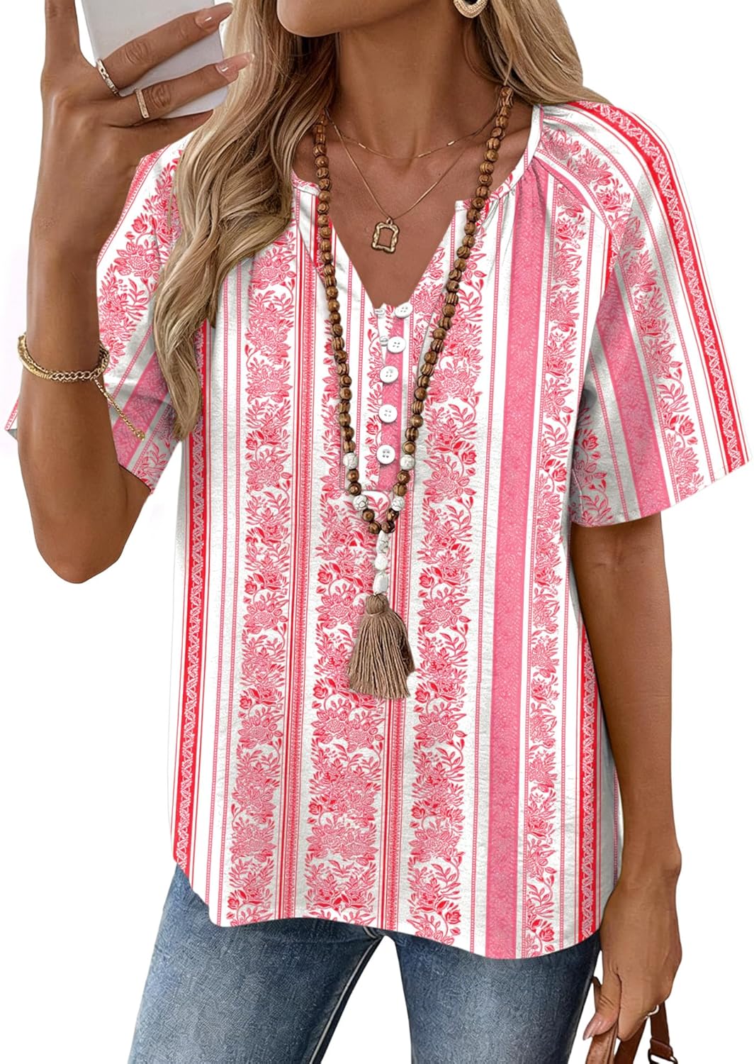Rapbin Womens Summer Boho Tops Casual Short Sleeve Blouses Button Down Shirts 2026 Beach Vacation Clothes