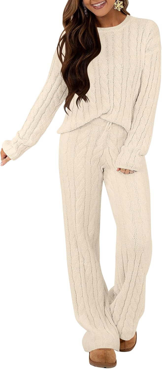 ANRABESS Women's Fuzzy Fleece Pajama Set 2 Piece Outfits Lounge Knit Oversized Sweater Pj Sets 2025 Fall Winter Loungewear
