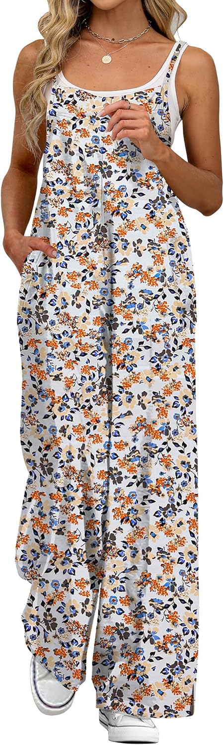 ATOG Women's Summer Jumpsuits Boho Wide Leg Overalls Casual Floral Print Rompers Beach Outfits with Pockets