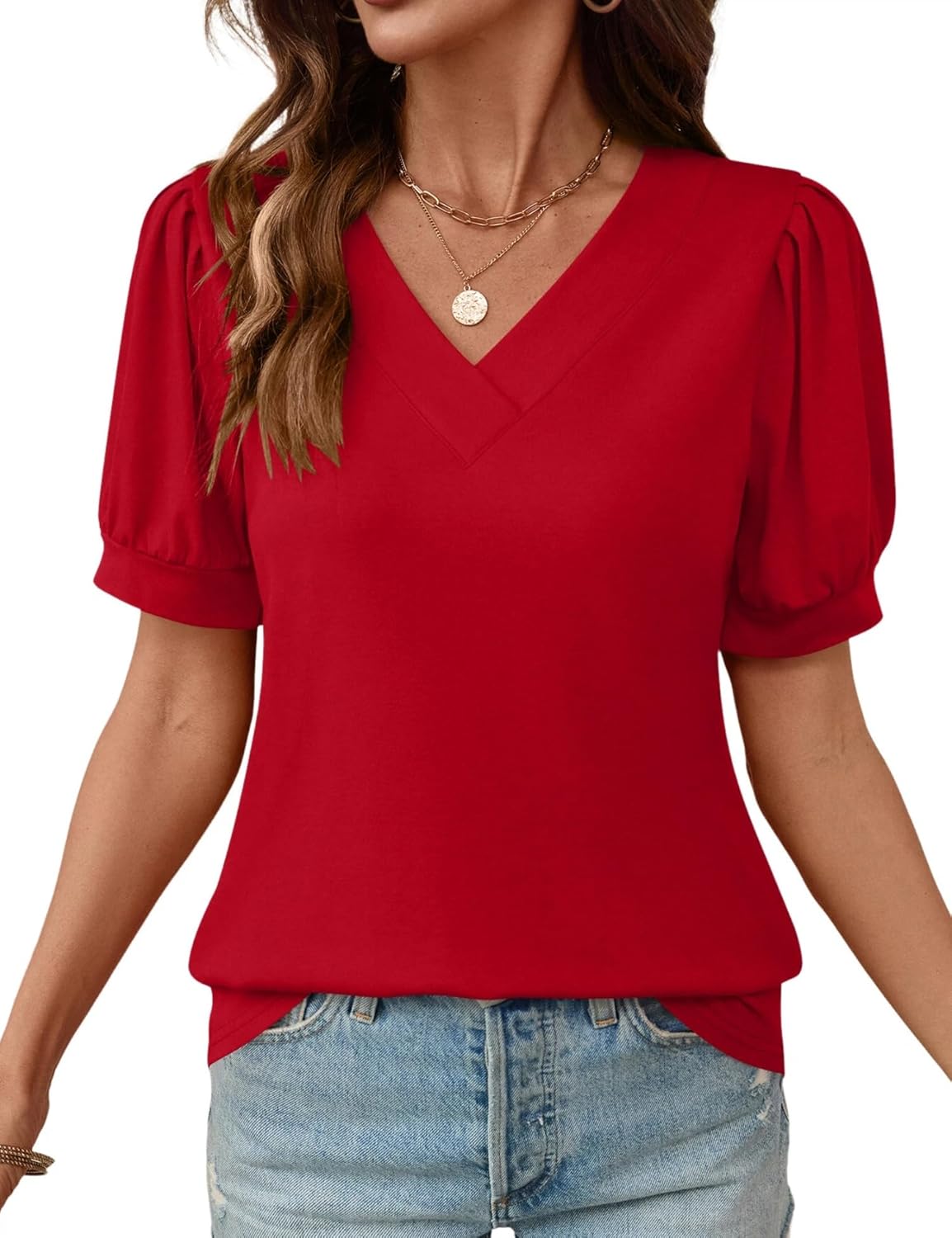 Rapbin Womens Summer Tops Puff Short Sleeve Shirts V Neck Blouses Business Casual Tunic Spring Fashion Clothes 2026
