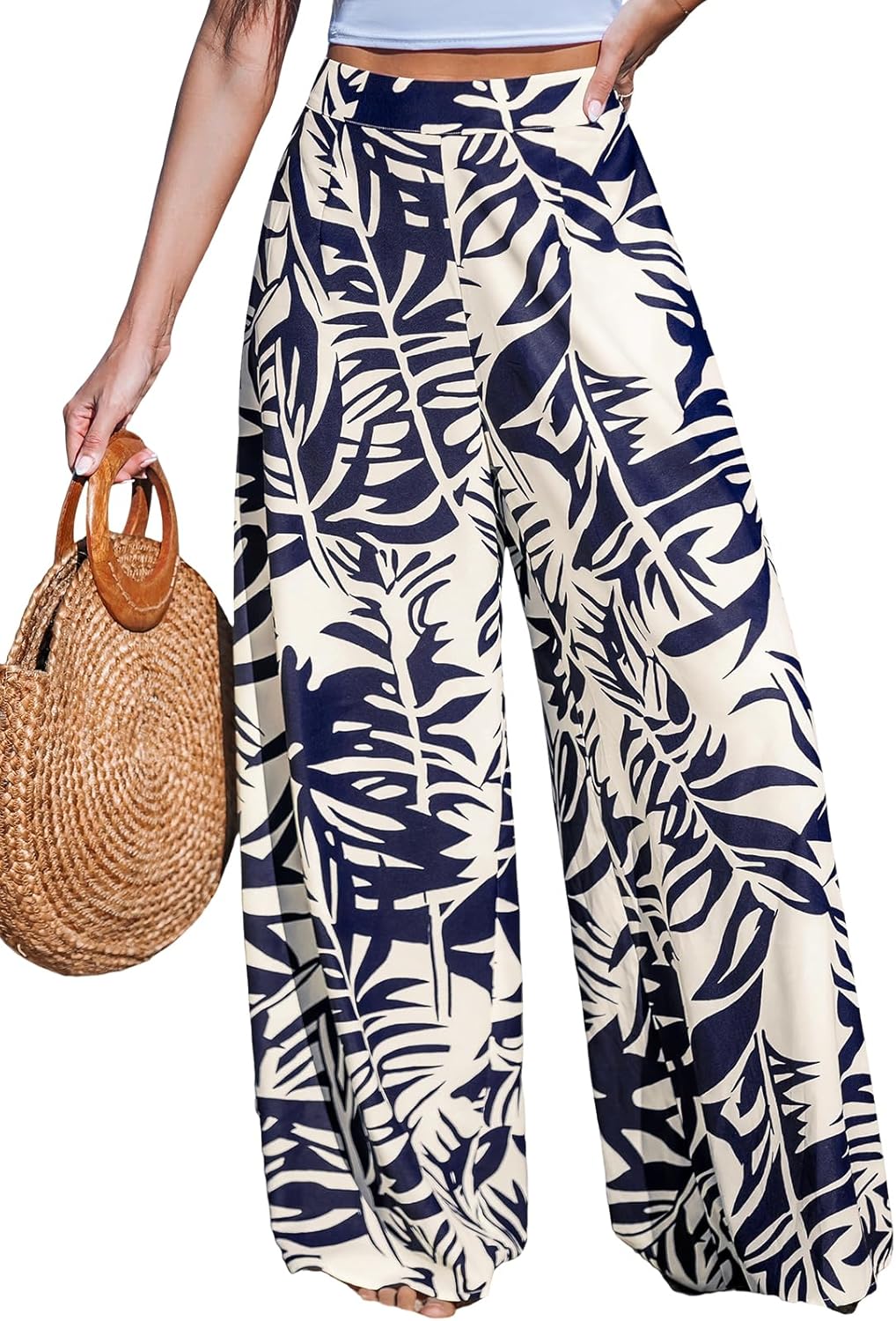 CUPSHE Women Wide Leg Beach Pants Tropical Floral Plus Size Pants with Pockets Vacation Casual Dressy