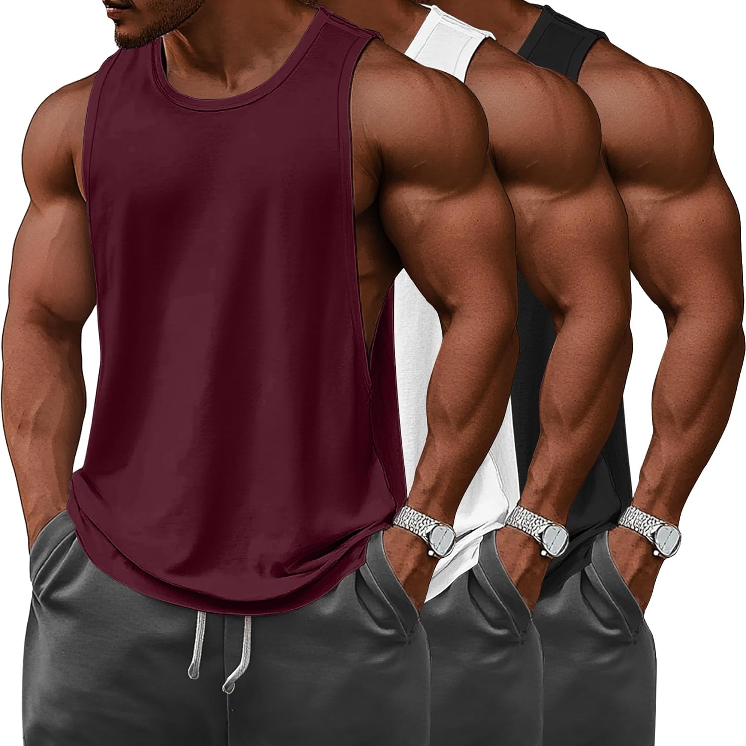 Ficerd 3 Pcs Big and Tall Men's Workout Tank Top Sleeveless Muscle Tee Gym Athletic Bodybuilding Cut Off Shirt
