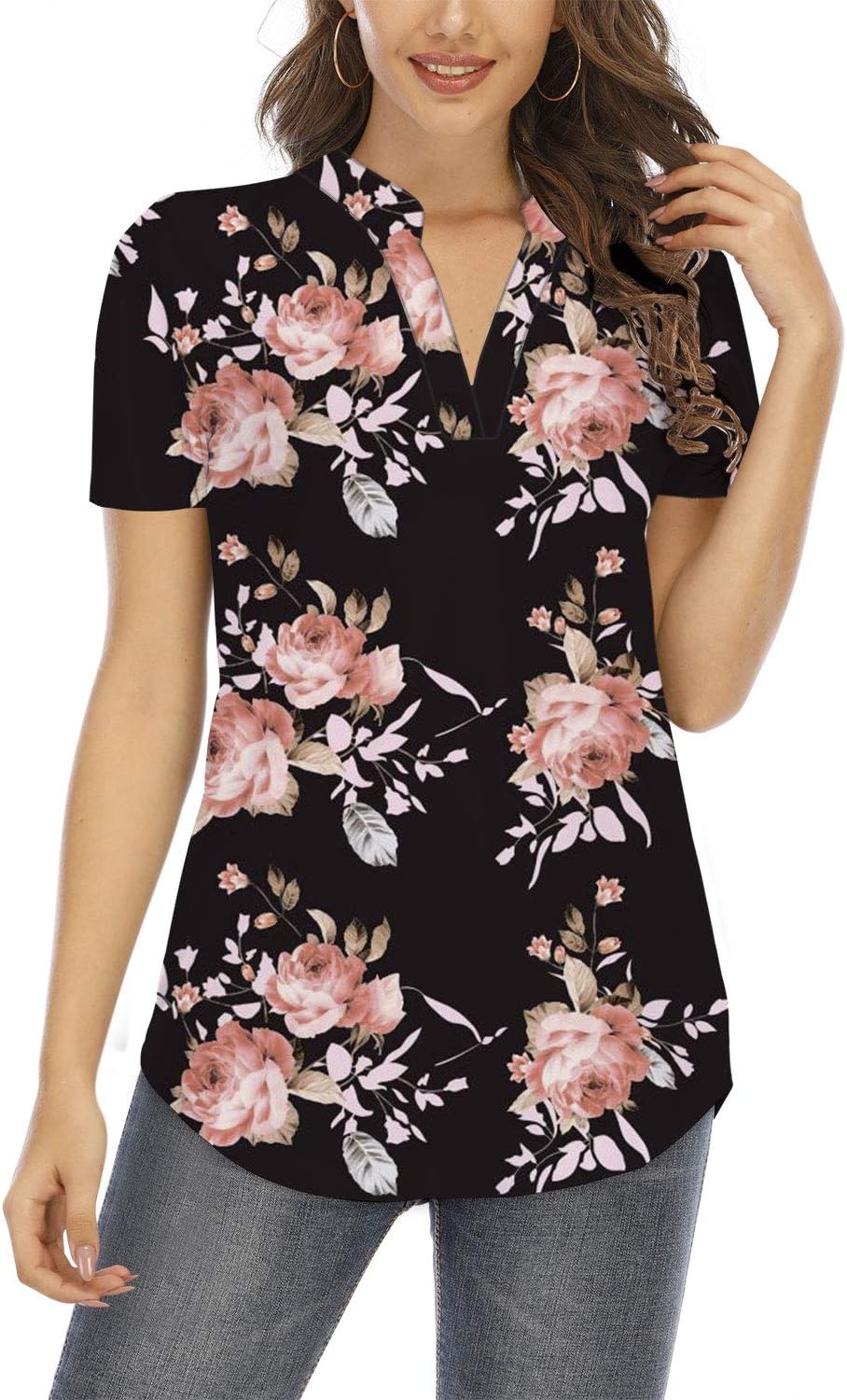 Beauhuty Womens Tops V Neck Blouses Floral Printed Casual Short/Long Sleeve Tunic Shirts