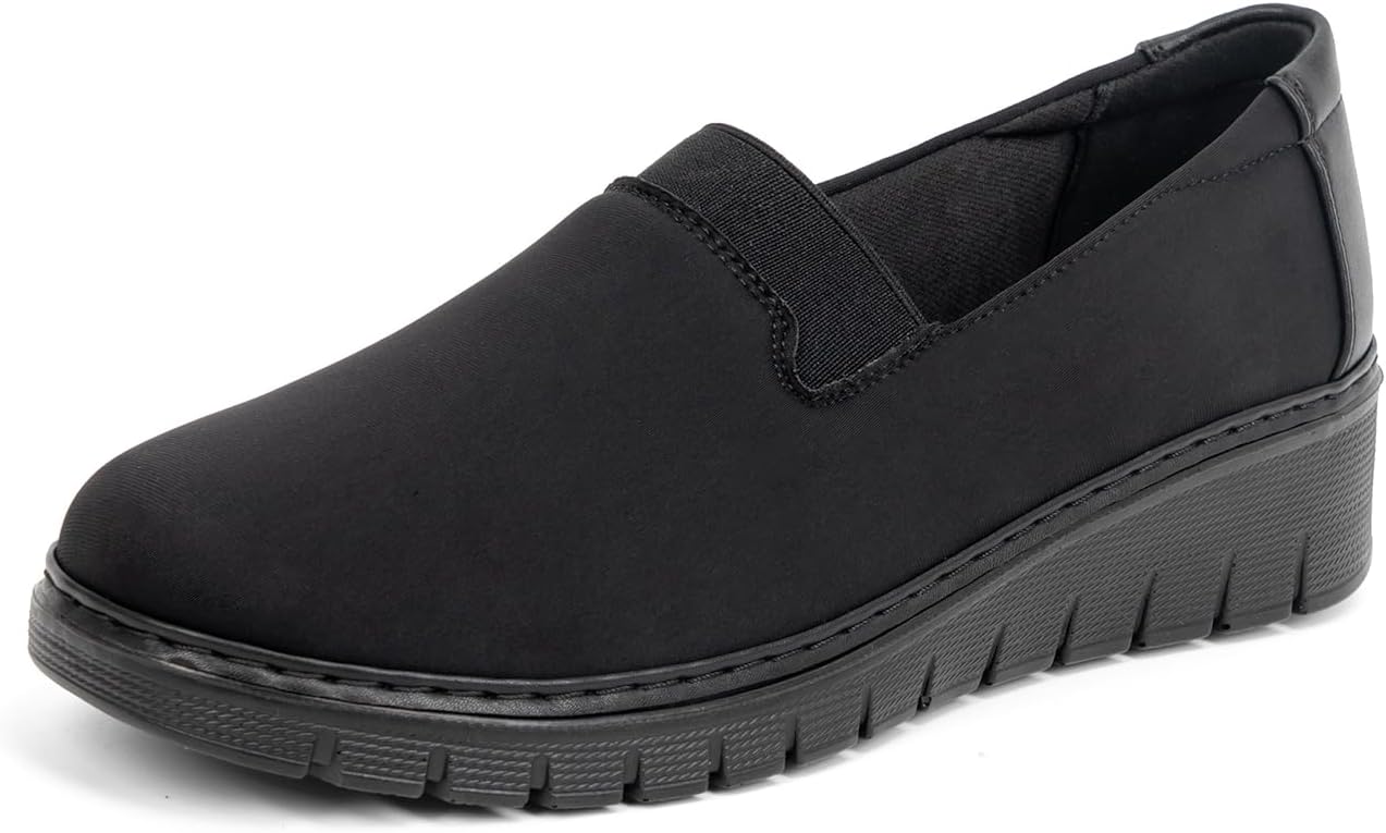 Women’s Orthopedic Loafers Round Toe Comfortable Slip-on Bunions Work Shoes Stretchy Walking Orthotic Shoes with Arch Support