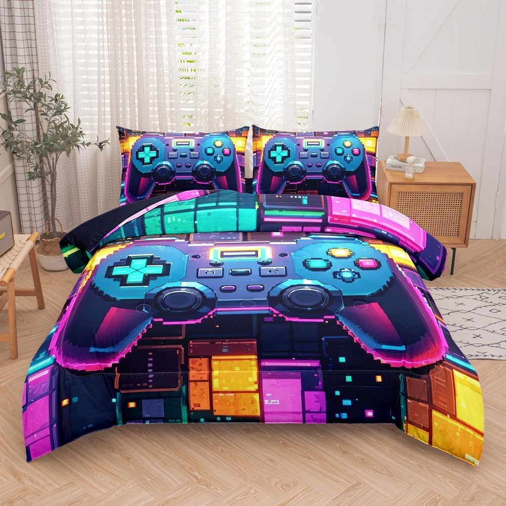 - 【Unique Pattern Design】 The comforter perfectly combines boys and gaming elements and harmonious color matching. It has both natural freshness and fashionable modern atmosphere,adding a beautiful scenery to your bedroom
