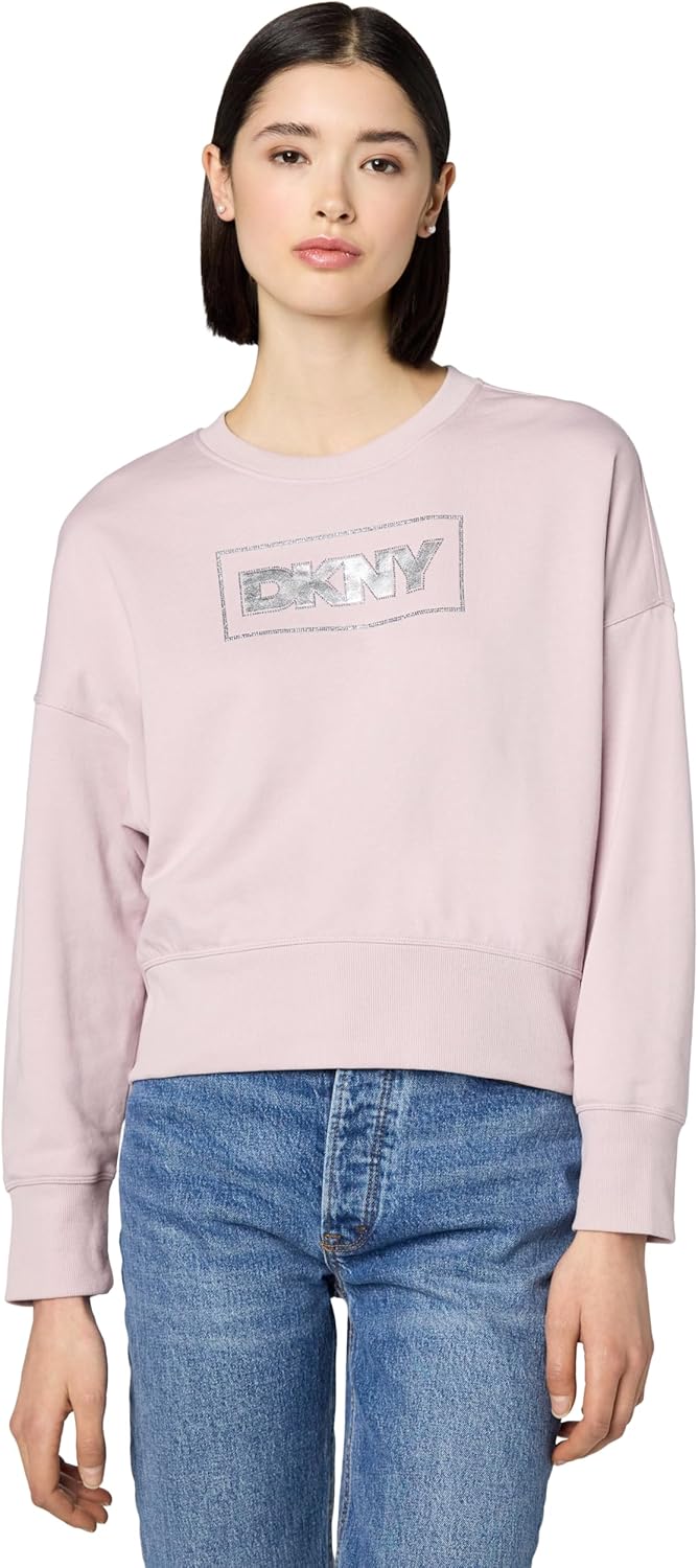 DKNY womens Foil Rhinestone Logo Crewneck Sweatshirt