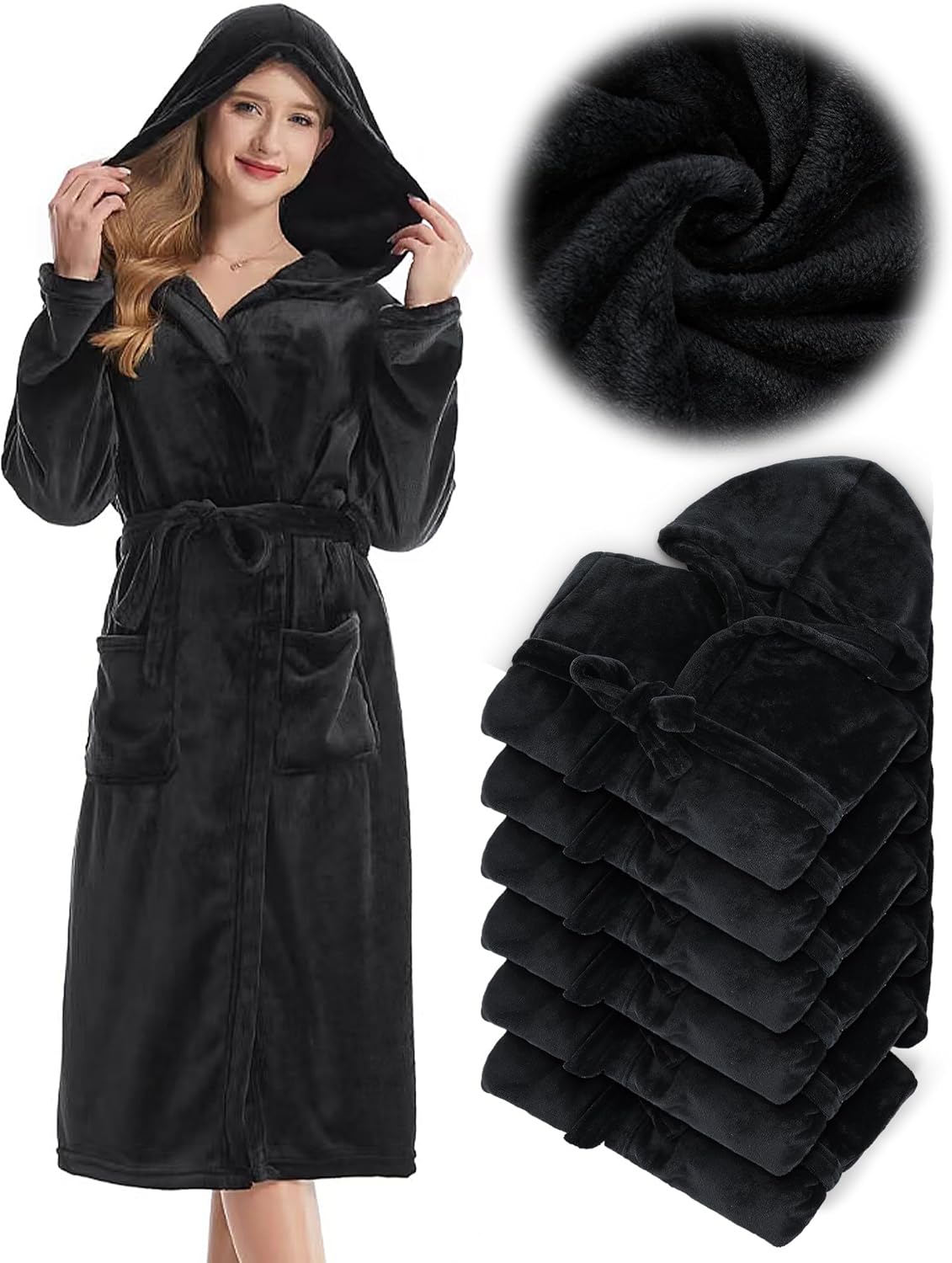 Women's Fleece Hooded Robe - Soft Plush Bathrobe Long Spa Robe Bulk Warm Towel for Winter