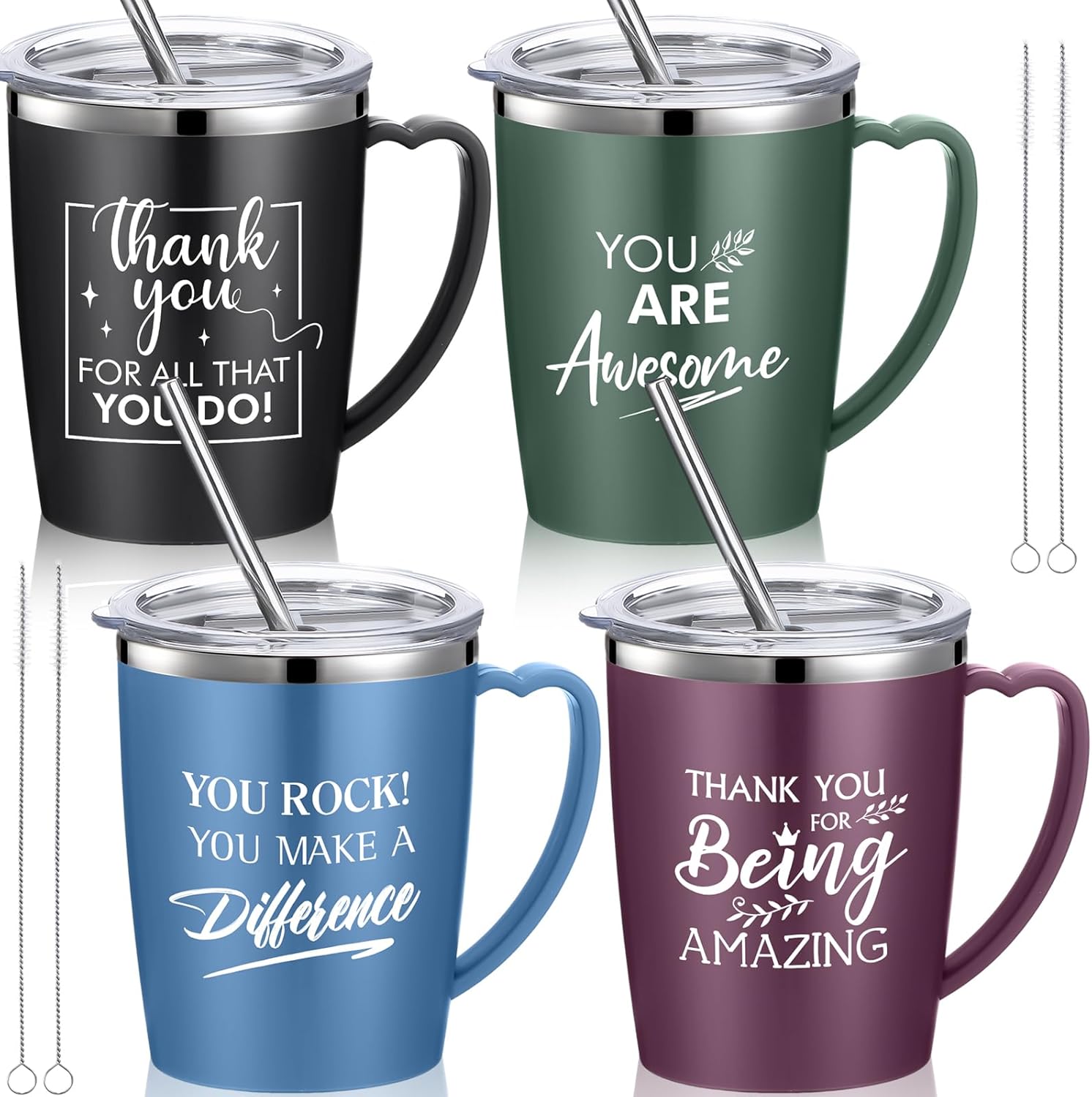 - Plentiful and Delicate Designed: this set of cute travel mug comes in four styles with different texts including [THANK YOU FOR ALL THAT YOU DO! ], [YOU ROCK! YOU MAKE A DIFFERENCE], [THANK YOU FOR BEING AMAZING] and [YOU ARE AWESOME]. Different styles are available for you to choose, this will be Christmas, birthday, New Year gifts to families or friends