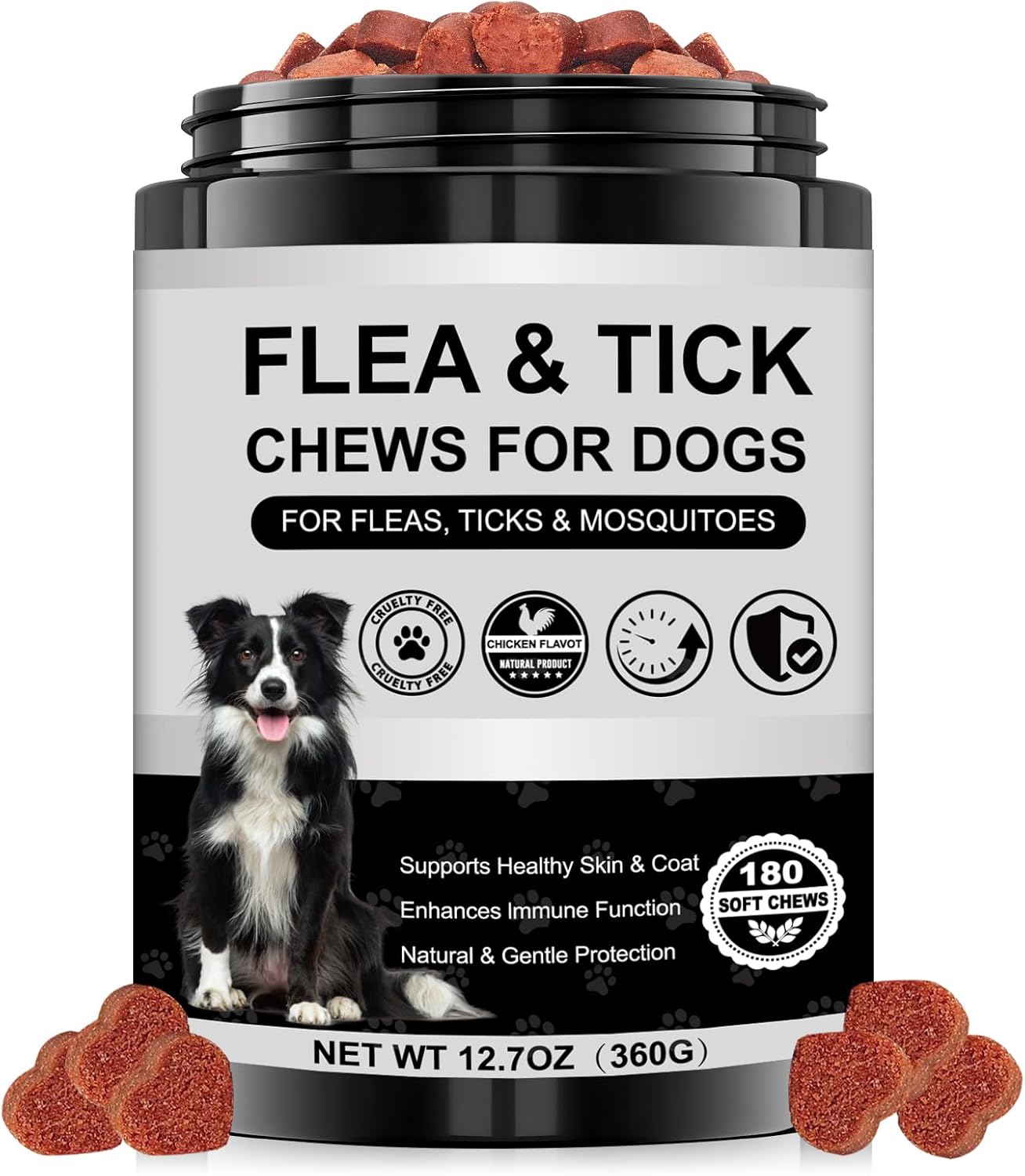 Dog Flea and Tick Chewable Supplement – Natural Support for Skin & Coat Health, Seasonal Comfort & Itch Relief – 180 Soft Chews with Chicken Flavor for Dogs & Puppies (180pcs)