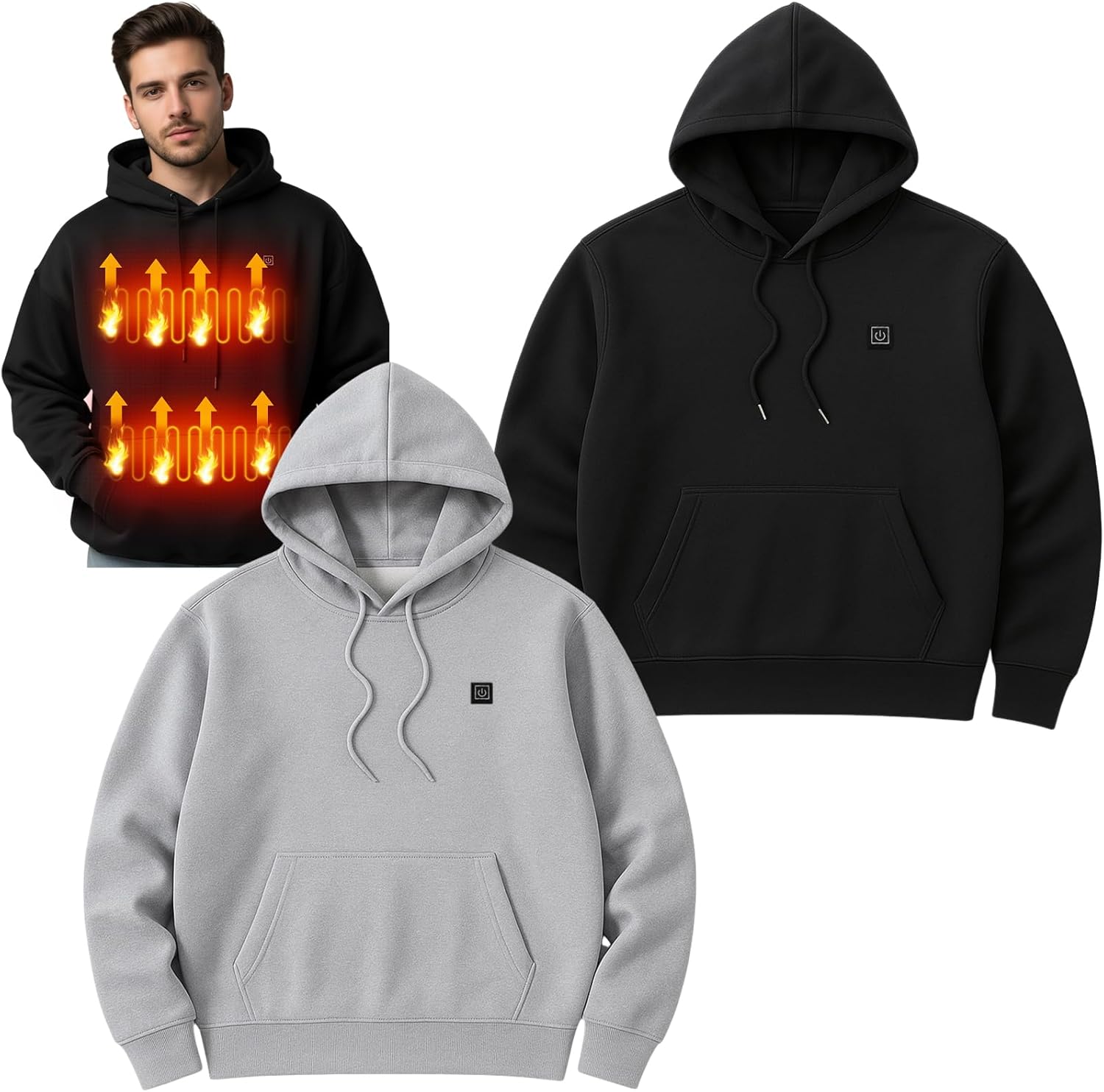 2 Pcs Heated Hoodie for Women and Men Unisex Heated Clothing Winter Electric Heating Coat, 5 Heating Zones